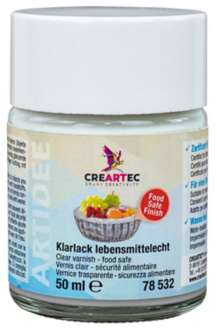 Vernis transparent, compatible au contact alimentaire, sans odeur et résistant à l’eau. Durée de séchage : 1 à 2 h. Convient aux surfaces absorbantes telles que le béton, plâtre, tissu, etc. Non adapté aux boissons chaudes. Contenu : 50 ml.