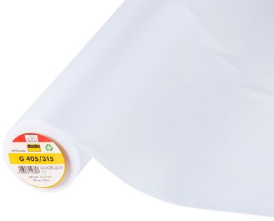 Vlieseline ® G 405, entoilage thermocollant, couleur : blanc, thermocollant d'un côté, épaisseur : 0,3 mm, largeur : 90 cm, poids : env. 44 g/m². Composition : 65 % polyamide, 35 % polyester.