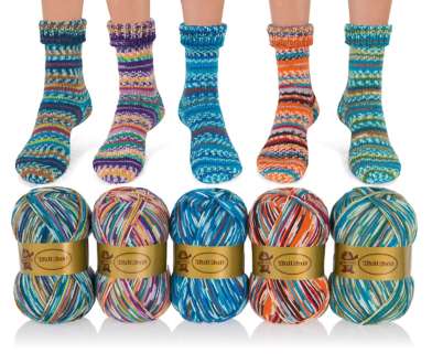 Disponible en pelote pratique de 200 grammes, suffisante pour une paire de chaussettes jusqu'à la taille 46.