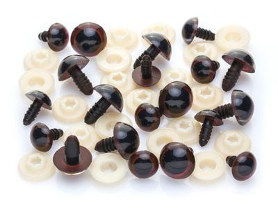 Yeux pour peluches en plastique, à insérer, avec fermeture de sécurité (rondelle de serrage), couleur : marron foncé, dimensions : 9 mm + 12 mm, contenu : 10 pièces par dimension = 20 pièces.